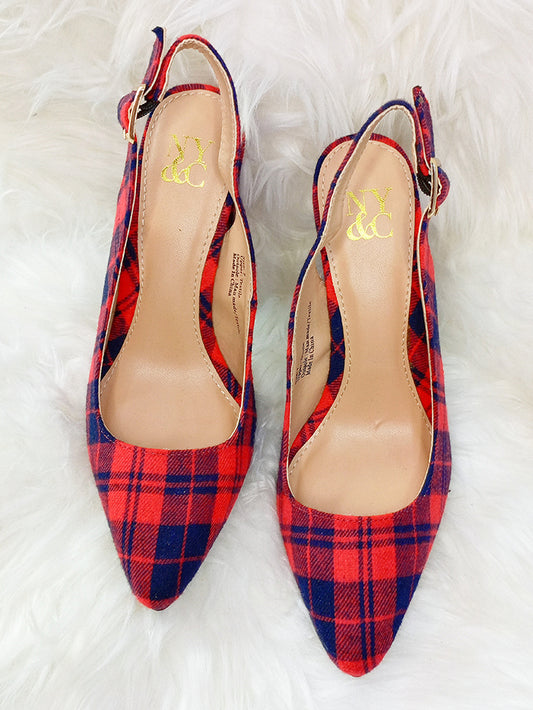 NY&C RED & BLUE PLAID SLINGBACK EVE HEEL
