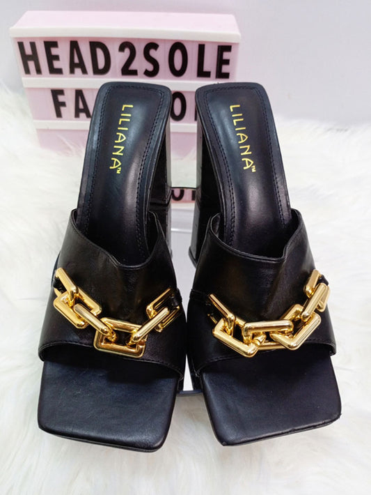 LILIANA CHAIN MULES BLOCK SLIPPERS IN IN VARIOUS COLOURS